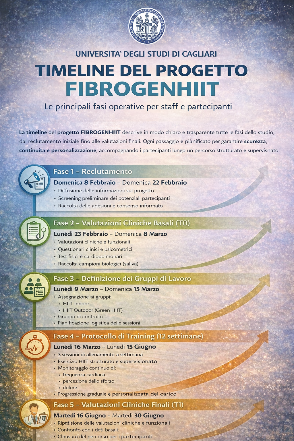 La timeline del progetto FIBROGENHIIT descrive in modo chiaro e trasparente tutte le fasi dello studio, dal reclutamento iniziale fino alle valutazioni finali.
